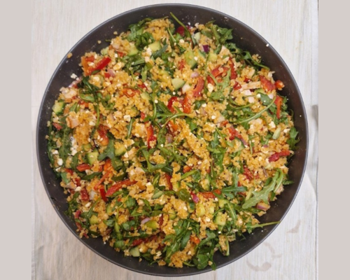 Onze stagiaire Maaike maakte deze lekkere bulgur-salade. Makkelijk te maken en lekker op een zonnige dag!