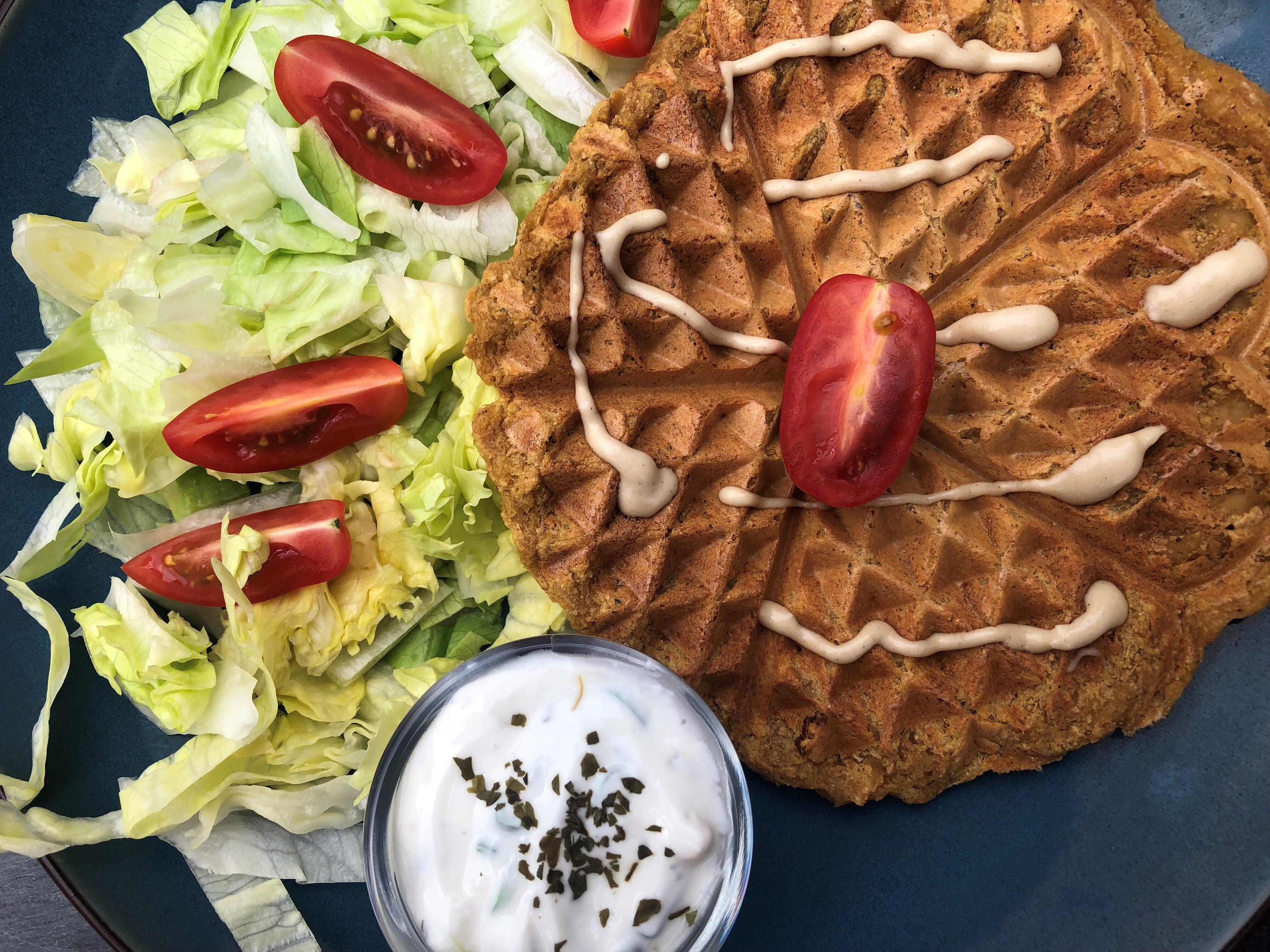 - Eet de wafel met een frisse salade en de sausjes