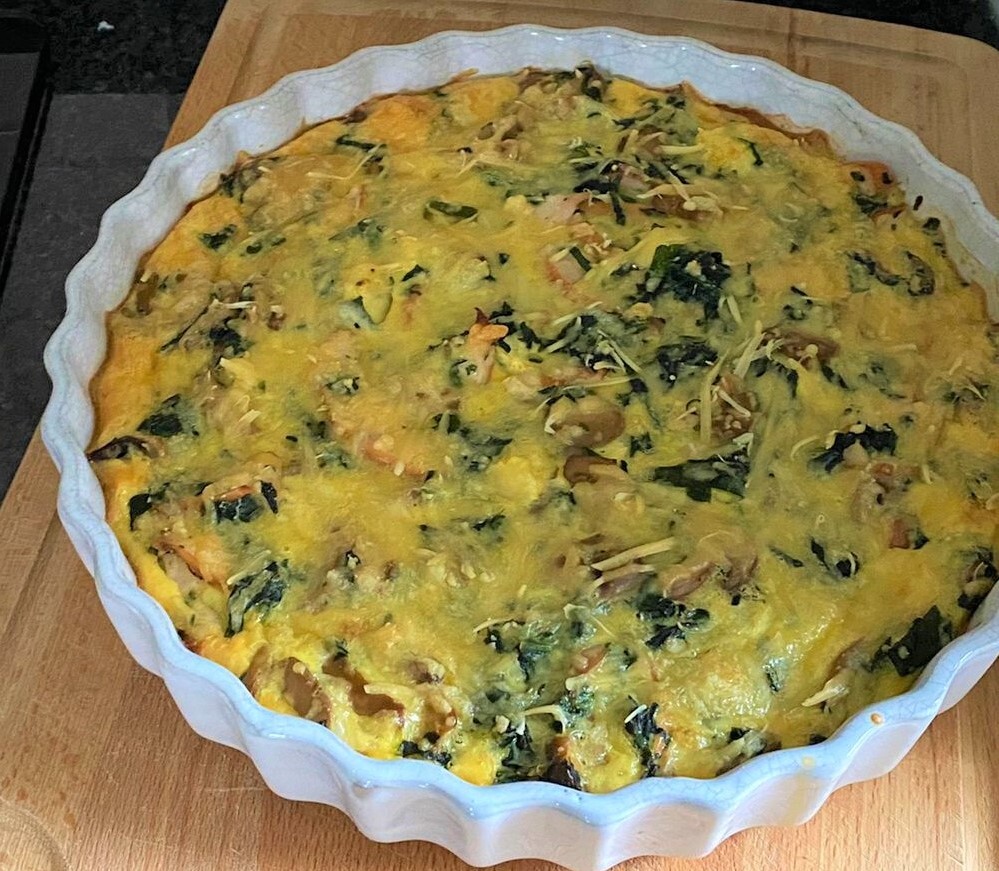 - Verdeel de rest van de kaas over de korstloze quiche.