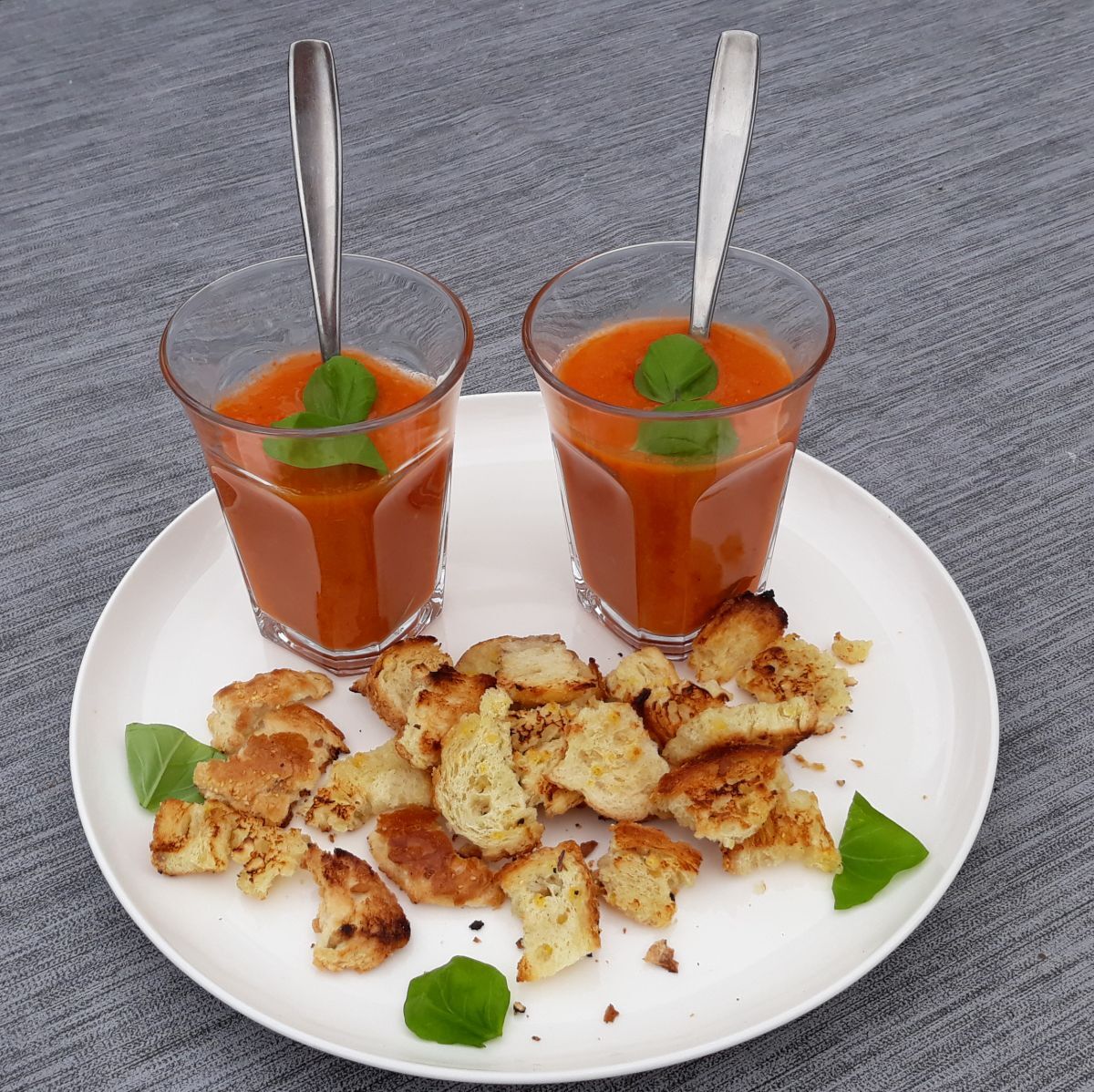 Op de hete dagen in de zomer is deze koud gegeten/gedronken soep een aanrader! Het recept wat Maureen gebruikt heeft is deels van haar oom en deels eigen interpretatie. Het is een erg praktisch soepje omdat je hem van tevoren kunt klaarmaken en gemakkelijk mee te nemen in een (thermos)fles voor tijdens de picknick.