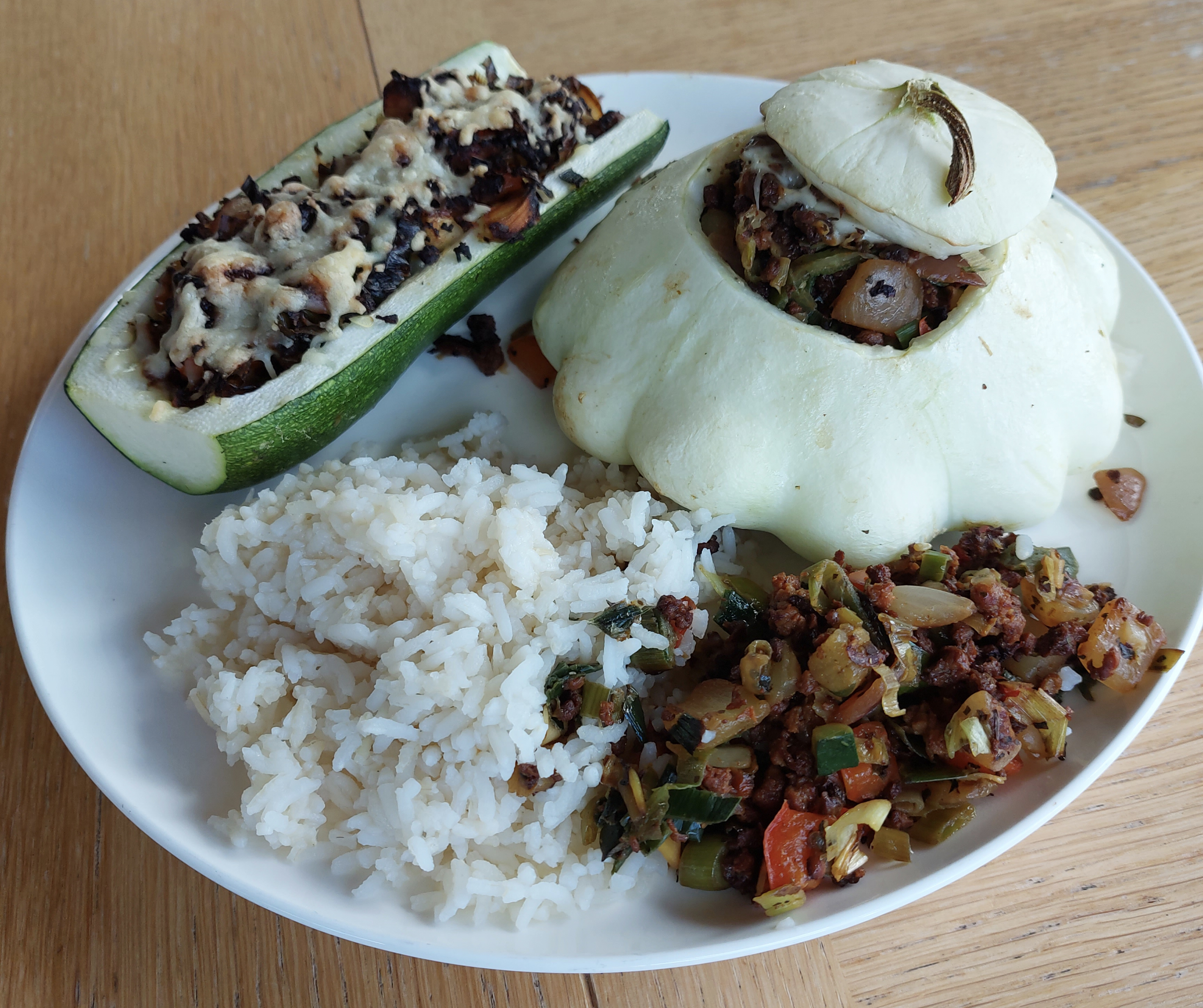 - vul de patisson(s) met het gehaktmengsel, doe het dekseltje erop en zet in een ovenschaal