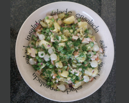 Het is warm zomerweer en dan heb ik (Maureen) geen trek in warm eten. Salades zijn een goede vervanging mits je zorgt voor voldoende groenten erin, een bron van eiwit en een bron van zetmeel. Dan heb je een goede maaltijd te pakken. Ik vond dit recept van Puur Gezond en maakte er een twist aan door ook wat (diepvries)broccoli toe te voegen en af te toppen met peterselie. De gerookte kip (wel sterk bewerkt vlees maar voor een keer kan het) geeft een hartige bite aan het geheel. Wat je eventueel overhoudt kun je maximaal 3 dagen bewaren. Ook lekker voor een lunch de volgende dag!
