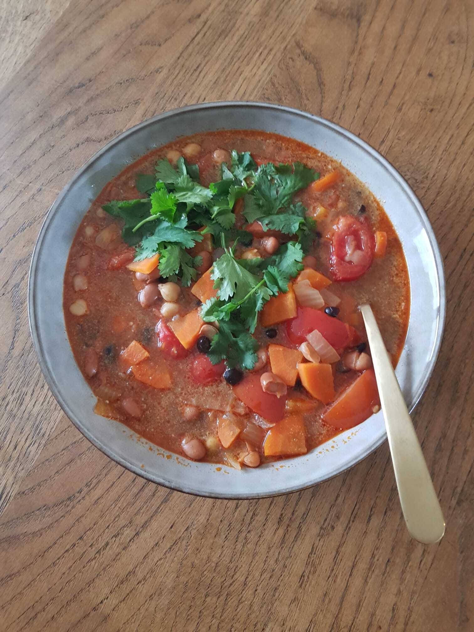 Peulvruchten hebben veel gezondheidsvoordelen, maar niet iedereen is thuis in koken met peulvruchten. Als je er wel van houdt, is dit recept zeker de moeite waard om eens te proberen. Weer of geen weer, deze soep smaakt altijd goed! Het recept komt uit de Allerhande en heb ik (Anna) naar eigen smaak aangepast. Ik maak deze soep regelmatig, zeker als ik geen zin heb om te koken maar wel een gezonde en voedzame maaltijd wil hebben. Je hoeft relatief weinig te snijden en na 20 minuten is de soep al klaar. De volgende dag smaakt hij zelfs nog lekkerder!