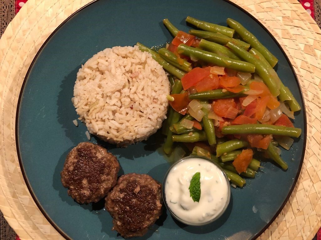 - Serveer de lamsburgers met groente en yoghurtsaus