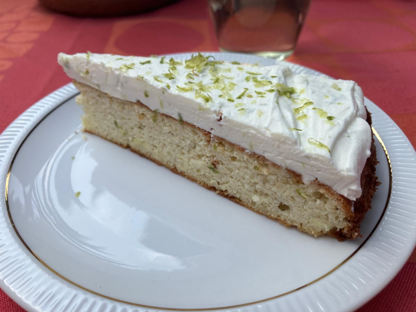 Er is totaal geen zoetmiddel gebruikt in deze taart en dat is voor veel mensen behoorlijk wennen aan de smaak. Maar de mascarpone-limoen-topping maakt hem heerlijk fris. Door de overweldigende frisse smaak van de topping viel de smaak van de taart een klein beetje weg. Je zou daarom kunnen overwegen om toch een klein beetje honing en wat pistachenootjes door het cakebeslag te roeren.