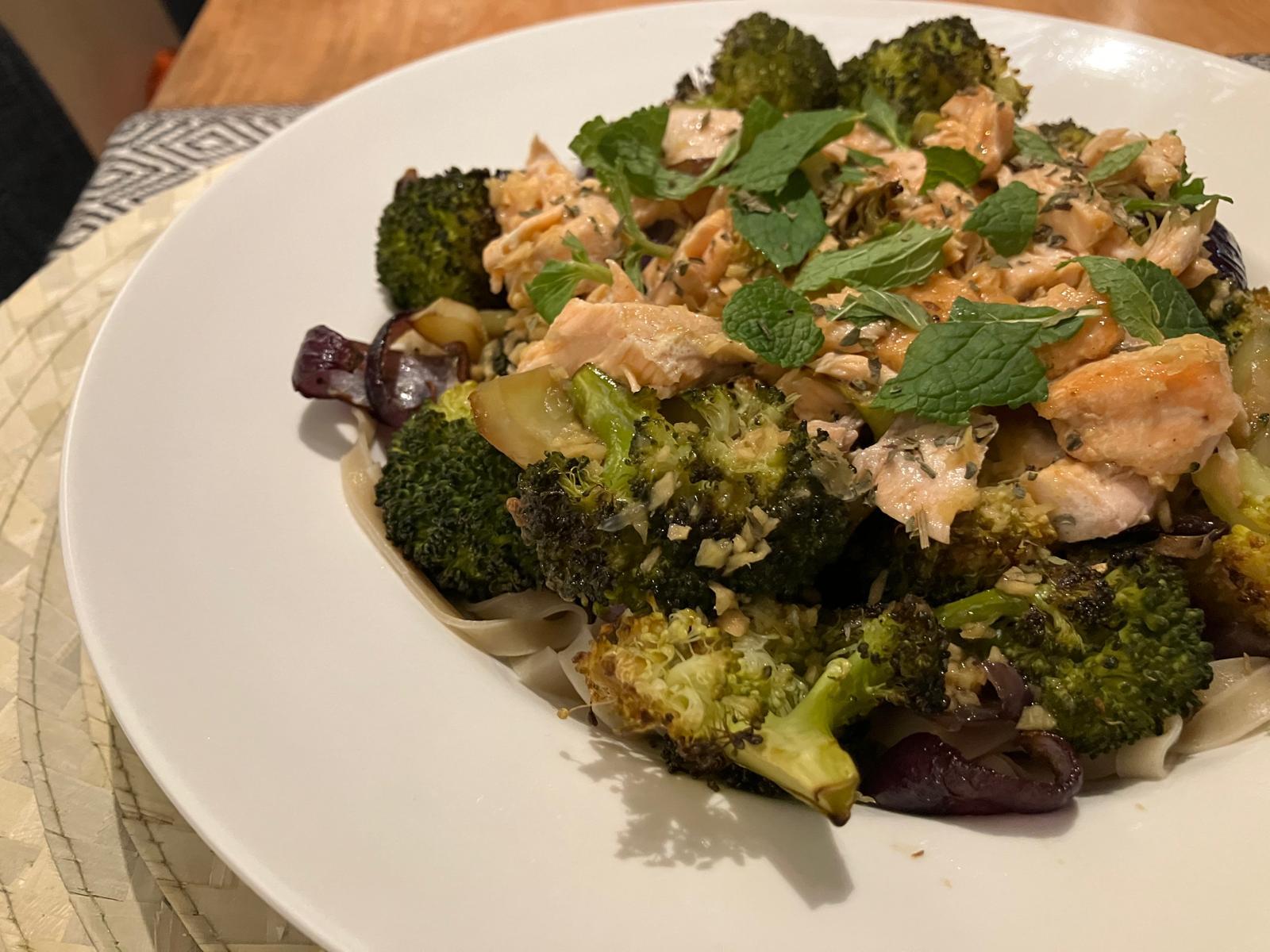 Oosterse zalm en broccoli uit de oven