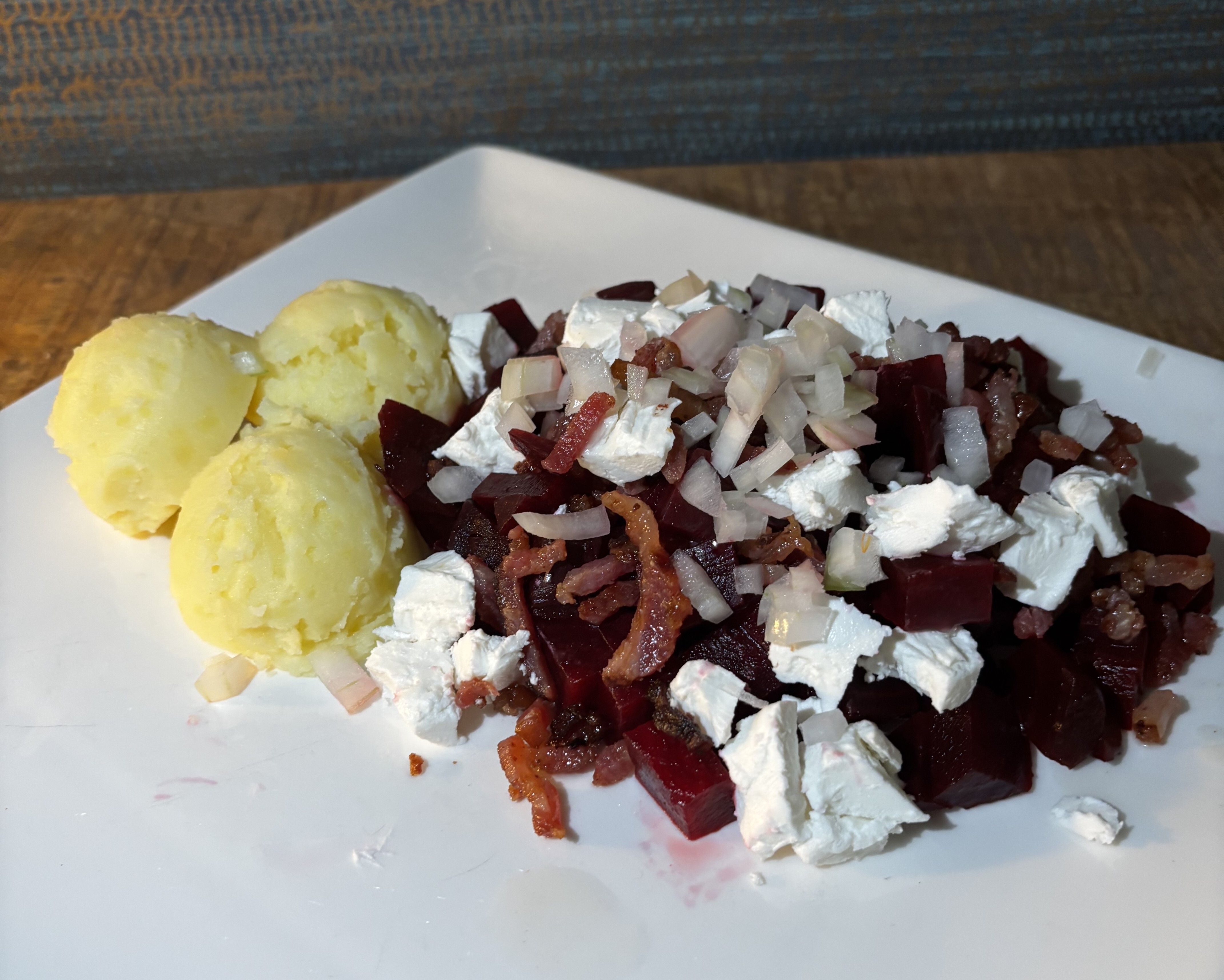 Rode bieten brengen kleur aan je maaltijd, zijn verrassend veelzijdig en hebben ook nog eens een aantal gezondheidsvoordelen. Zo zitten er in rode bietjes veel vitamine en mineralen, zijn ze goed voor je bloeddruk, kunnen ze je sportprestaties verbeteren en boosten ze je immuunsysteem. Wat een geluk dat mijn (Patricia) kinderen er gek op zijn. Het liefst eten zij ze met spekjes en geitenkaas, en voor sommige van ons nog wat rauwe uitjes. Op een herfstachtige dag, erg lekker met aardappelpuree.