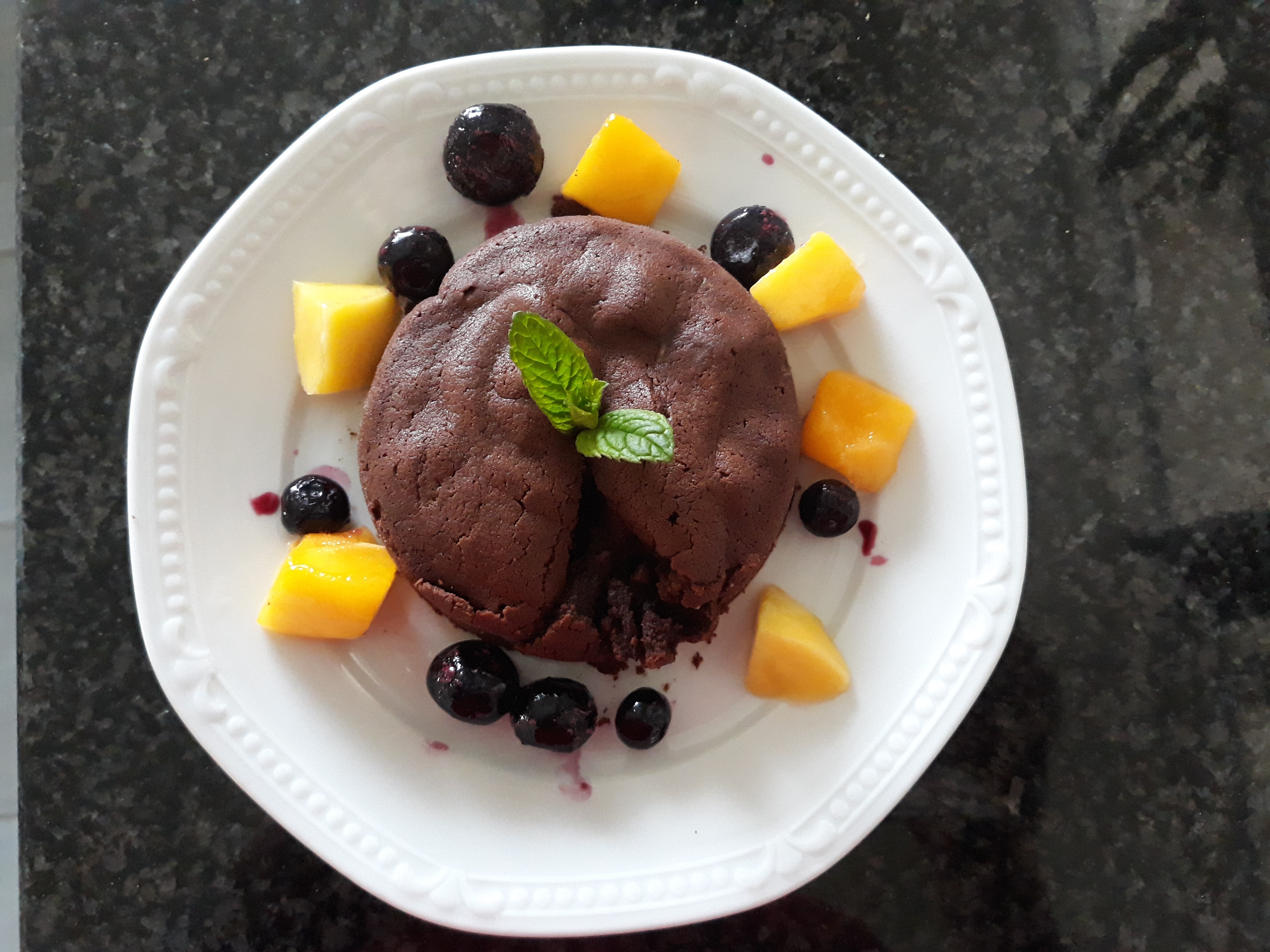 - bak in de oven max 12 minuten zodat de buitenkant stevig is maar de binnenkant heet en vloeibaar. Met 8-10 minuten is de chocolade in het midden nog vloeibaar (ik had het iets te lang erin gelaten)