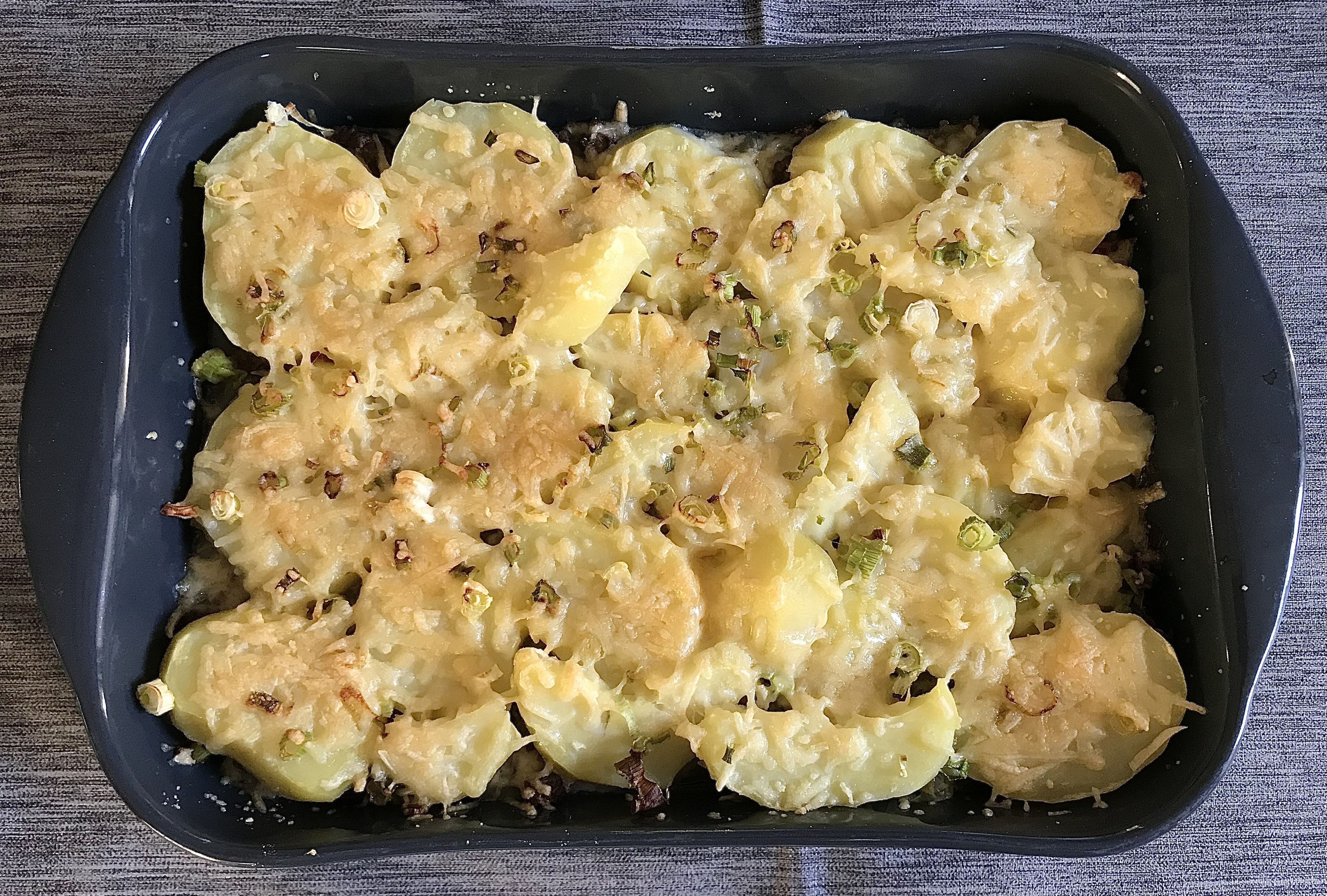 - Leg hier de plakjes aardappelen overheen.